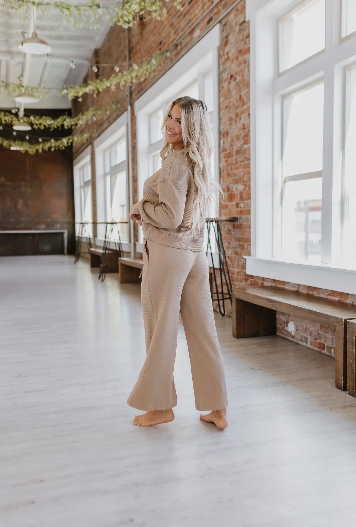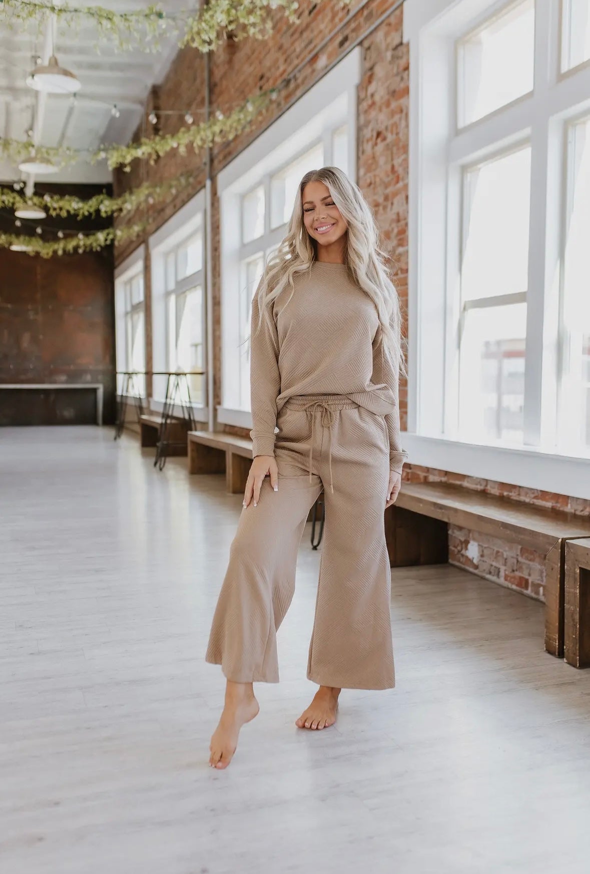 Wide Leg Pants with Elastic Waist Draw String Side Pockets